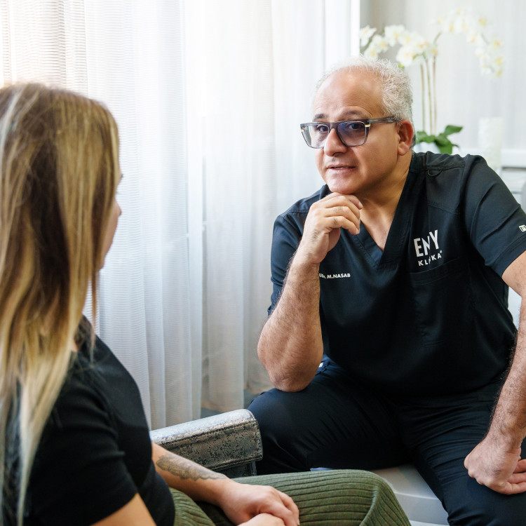 MUDr. Mahdi NASAB po absolvovaní Lekárskej fakulty UPJŠ v Košiciach a atestáciách v odbore všeobecná chirurgia 1. stupňa a v odbore plastická chirurgia svoju odbornú prax odštartoval na Klinike popálenín a rekonštrukčnej chirurgie 1. súkromnej nemocnice v Šaci. V praxi pokračoval na Slovensku a v zahraničí.