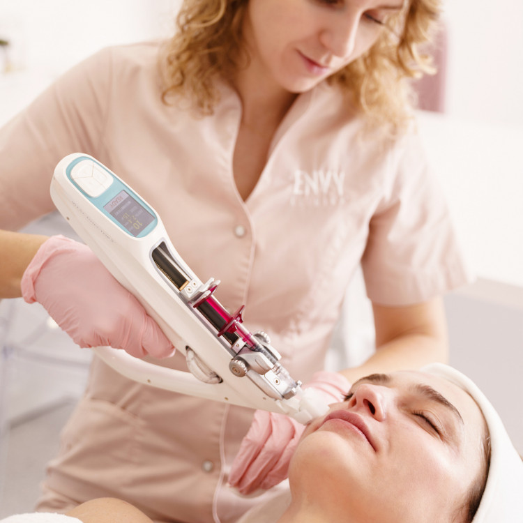 Výhodou prístroja je rovnomerná aplikácia materiálu do zvolenej oblasti, pretože lekár si na základe typu pokožky – hrúbka, pórovitosť, senzitivita – sám nastaví hĺbku vpichu, objem materiálu a rýchlosť aplikácie.