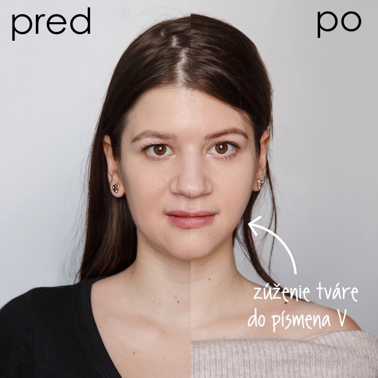 Aplikáciou látky na to určenej do žuvacieho svalu tváre dochádza k jeho atrofii, výsledkom čoho je užšia tvár so zvýraznenými lícnymi kosťami (tvar písmena V). V praxi to znamená oslabenie a zmenu objemu svalu, čo má za následok dlhodobé zúženie šírky čeľuste – tvár získava užší a srdcovitejší tvar.